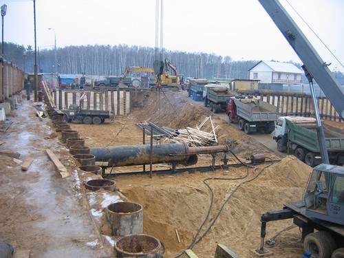Нужный вариант выполняемых работ указывается в ТЗ к проекту. На строительном участке выполняют предварительную подготовку по рытью котлованов «подачи» и «приёма». Завозят технику, выполняют монтаж агрегатов в готовые котлованы.
